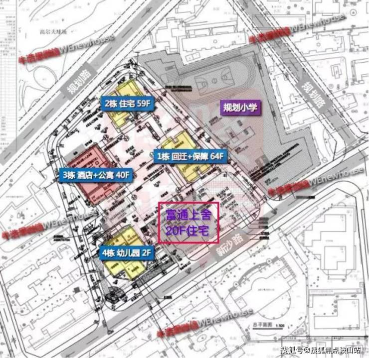 项目位于福田区沙头街道新沙路18号,项目由3栋超高层建筑及1栋多层建筑构成,包含回迁房、保障房、商品住宅、酒店及商务公寓等业态,配建一所幼儿园,旁边规划建设一所小学。1栋由回迁房与保障性住房组成,64层加地下3层,楼高196.8米。2栋为商品住宅,59层加地下5层(含两层半地下室),楼高189.15米。3栋由酒店、商务公寓、人才住房组成,40层加地下4层(含一层半地下室)楼高172.85米。本期销售住宅有260户,其中户型套内建筑面积小于90㎡为230套,占比88.46%。