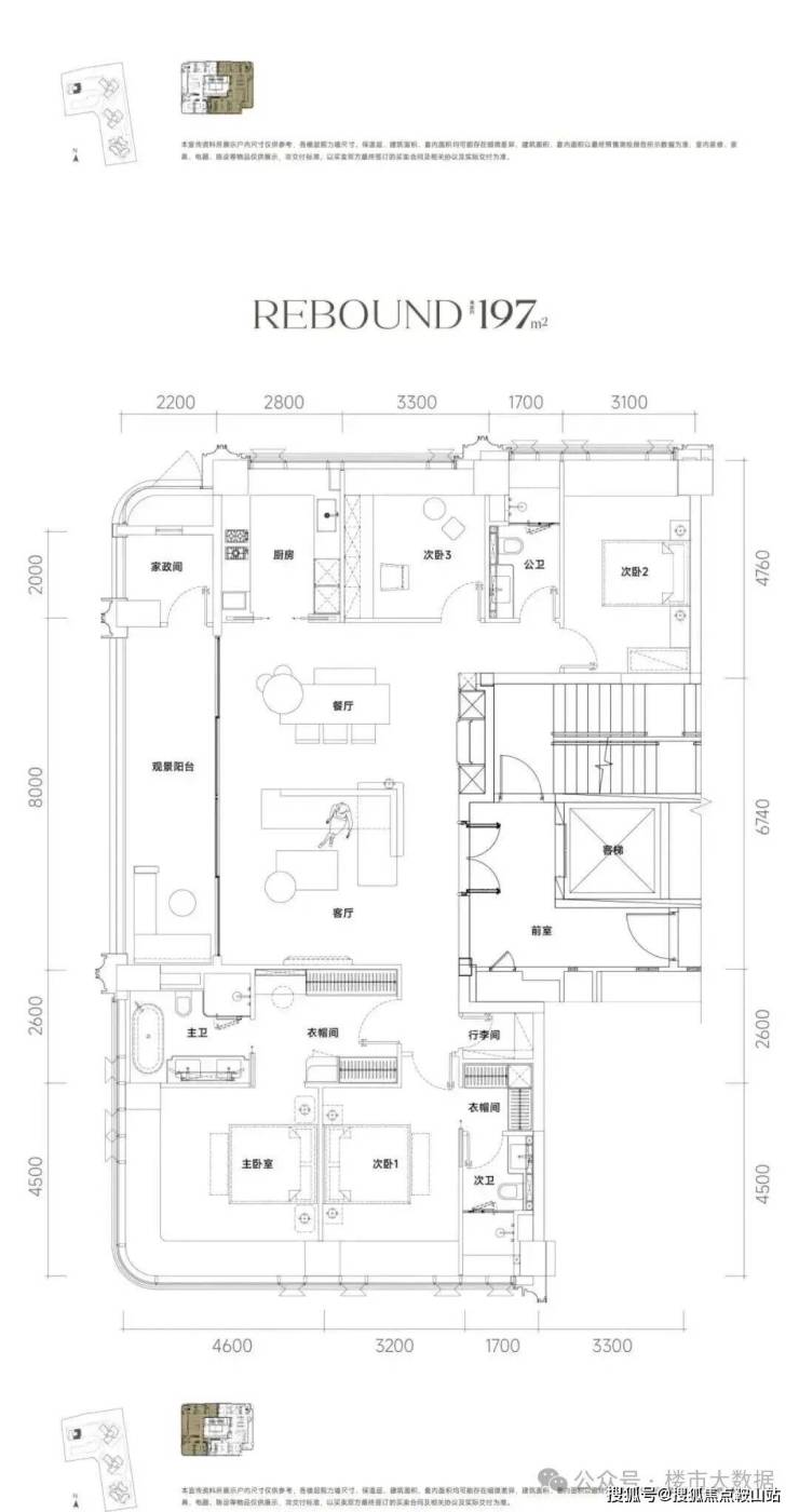 :建面约186-247㎡精装大平层,主打 T2/T3 楼型,专梯专户设计,四房三卫布局,南北通透。