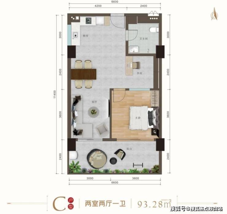 在售产品:舒适开间、奢阔两房(层高3.6米)