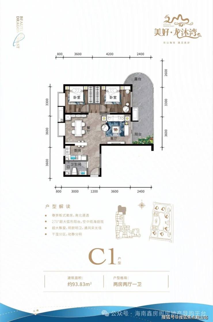 ④ 三房户型三面采光,空间方正合理,双独立明卫,270°环型瞰海阳台