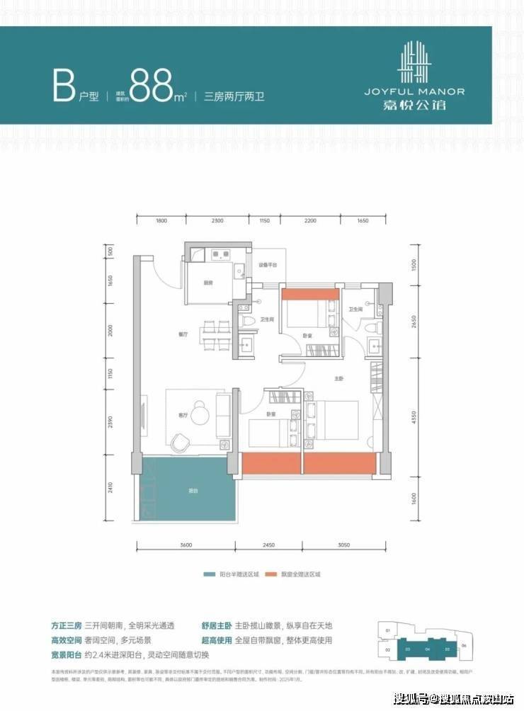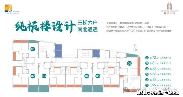 户型区间:72-99㎡三至四房,精装交付,实用率领先市场