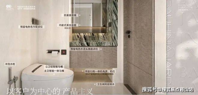 静音专项设计、线形地漏(淋浴间)、同层排水(洗手间)。