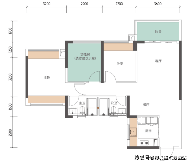 主卧套房设计:开间3.2米,带独立卫生间,私密性好。