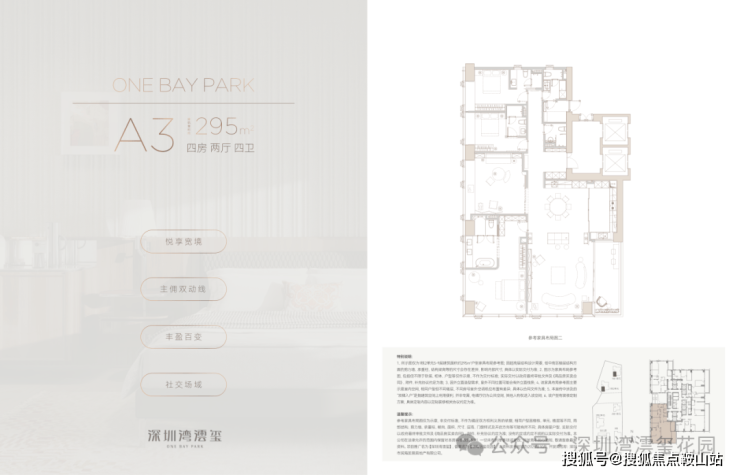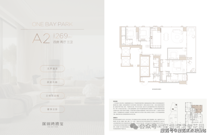 一席藏尽海/湖/园/城,四重盛景,踞守深圳湾畔约270°环瞰海景壮阔、湖境悠然、园景森氧、城脉璀璨的封面地脉。近享深圳人才公园,占地77万平方米,内湖面积约32万平方米,"公园生活圈"步行可达