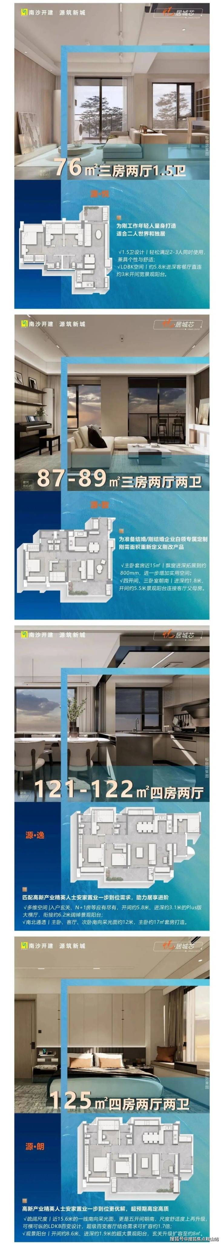 本项目房源面积涵盖约75-175㎡品质三至四房,户型南北通透、极致实用,满足多种居住需求。