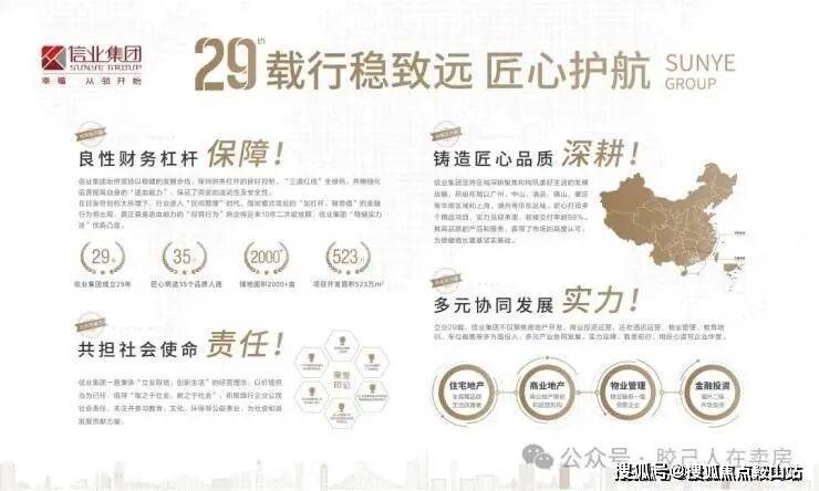 信业集团,成立于1993年,前身为美心地产,立足于广州。辐射华南、华东区域城市。集团的发展战略以稳健为主,诚信经营,资金充足,企业推行多元化发展战略,以房地产为主,经营涵盖各大行业,逐渐成为大型化集团企业