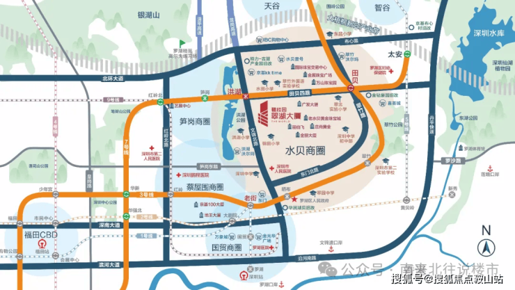 往北接驳北环大道,往南接驳深南大道、滨河大道,方便通达福田、南山。