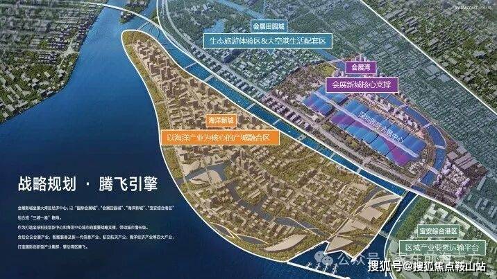 29.42平方公里会展新城,规划布局“三城一港”:国际会展城、海洋新城、会展田园城和综合港区,打造深圳在全球科技创新中心和海洋中心城市地位的重要战略支撑