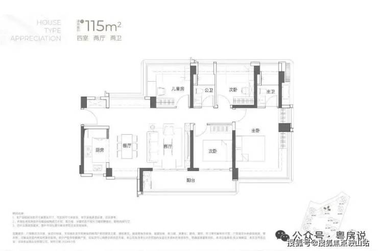 115㎡的4房2厅2卫:横厅南北通透格局,客餐厅6米开间,LDKB一体化,全屋飘窗,4个卧室分别做到了3.9米/3米/2.8米/2.6米的宽度,主卧加1个次卧270°全景飘窗,客厅出6米长的大阳台,L型厨房,得房率约95-97%(包含赠送),西南或东南朝向。115平米户型分布在1栋1单元、1栋2单元、1栋3单元01/02户型,01户型西南朝向都是看小区外围,02户型看向小区;