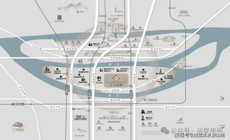 项目择址广州黄金中轴南拓首站,稀贵中轴岛心,咫尺珠江新城-琶洲-万博三大CBD,绝版江城双景,主城烫金版图,尽享城市塔尖资源。