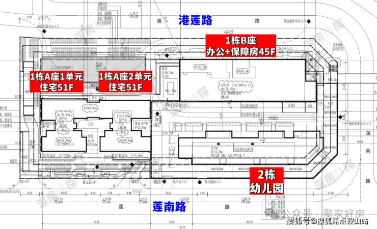 莲塘金岸里,由兆丰源公司打造,其背后股东主要是2家珠宝公司,总占地面积约0.82万㎡,总建筑面积约11.59万㎡,计容建筑面积约8.66万㎡,容积率9.62,绿化率40%,共由2栋45-51层高住宅组成,其中1栋A座1单元/2单元住宅51F,1栋B座办公+保障性住房45F,2栋是1所幼儿园。