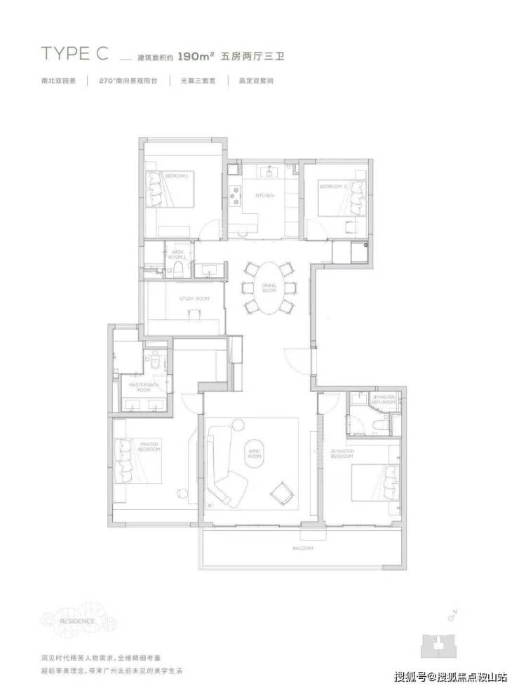 在售户型:145㎡三居、174㎡四居、190m²五居和260及320m²五居