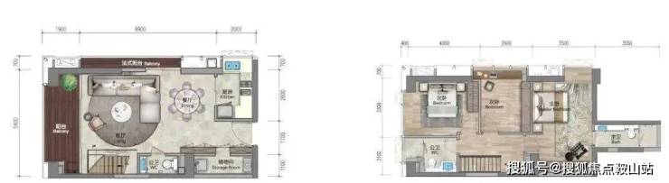79㎡复式三房两厅三卫:南北通透,5.4米大开间,复式下层餐厨客厅连宽景阳台,另带一个法式小阳台。复式上层私密卧房全明采光,动静分区私享个性生活。另一个次卧带衣帽间。