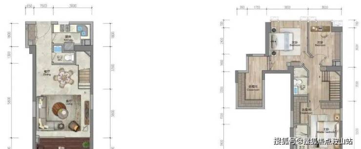 113㎡复式三房两厅三卫+工人房:南北通透三面景观,5.6米客厅与主卧开间,独具品位,尽享奢阔。