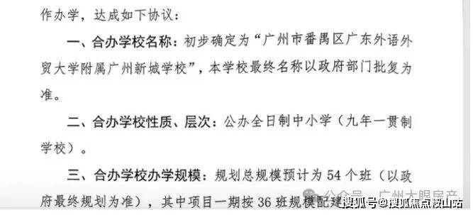 目前广州地铁地产·珑曜上城配建的广东外语外贸大学附属广州新城学校,学校总规模预计为54班,其中一期按36班规模建设,是一所九年一贯制学校,小升初明确。