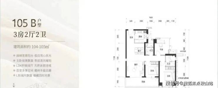 105㎡: 竖厅格局,客厅与卧室连通超大阳台,LDK一体化设计,主卧室270度转角飘窗,看城市景观,主要朝向为西南和东南