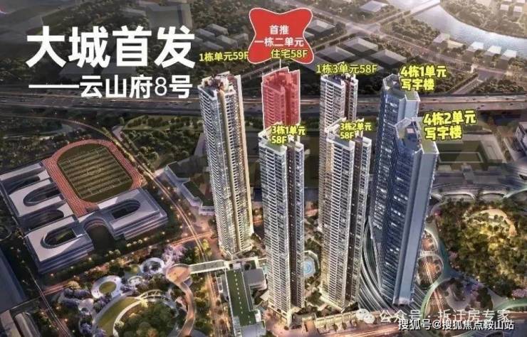 未来平方云山府,共分3期建设,总占地面积约2.73万㎡,总建筑面积约37.41万㎡,计容建筑面积约27.51万㎡,容积率9.23,绿化率32.01%,共由5栋58-59层高住宅组成,其中1栋1单元住宅59F,1栋2/3单元住宅58F,3栋1单元/2单元住宅58F,4栋1/2单元写字楼35F,2栋是1所18班幼儿园,配建有公交首末站。