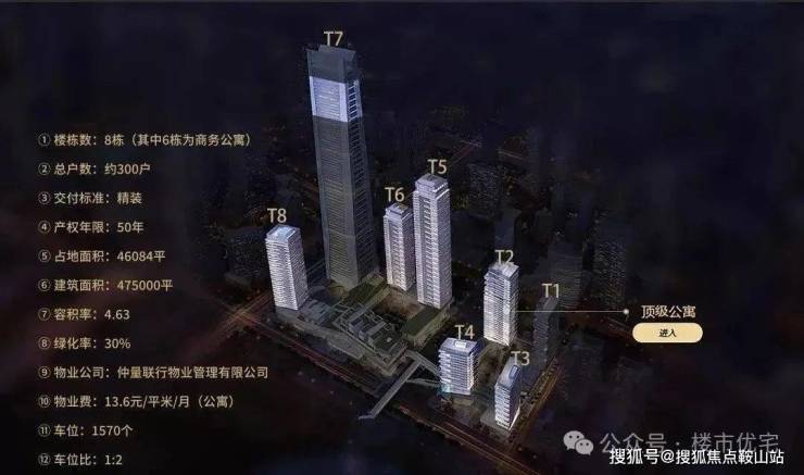 南区分为:T5、T6、T8公寓,T7为环球商务中心。