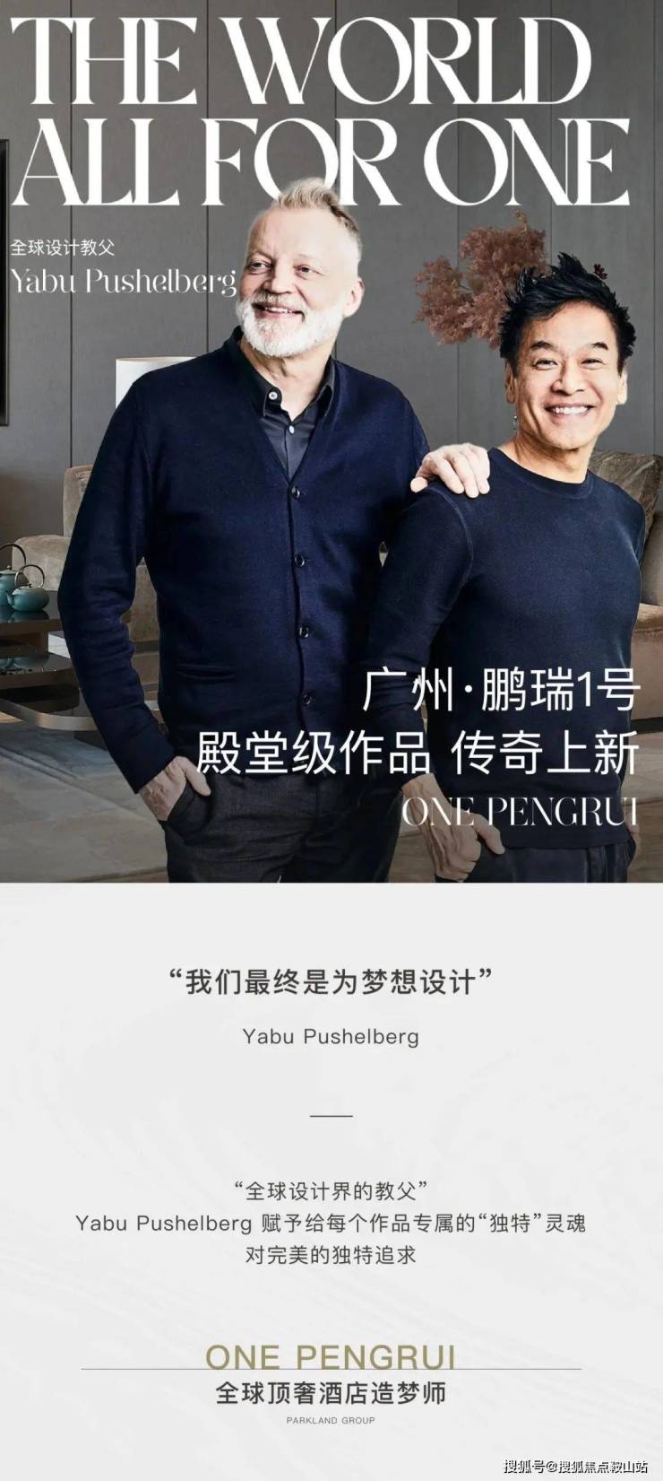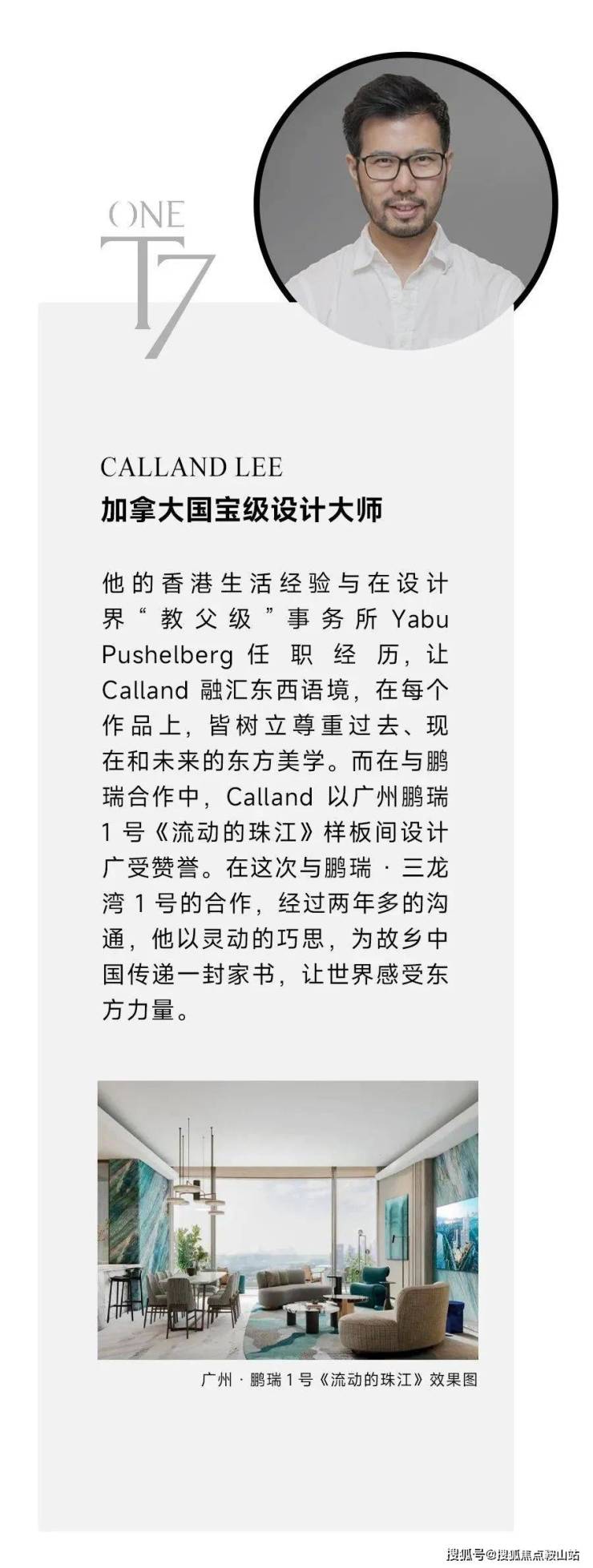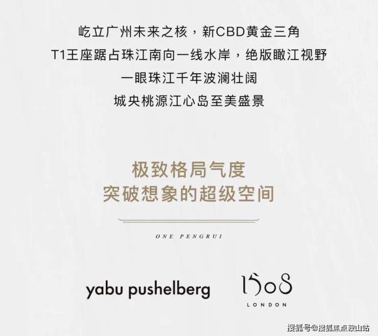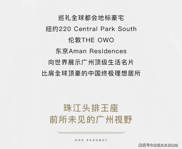 广州鹏瑞1号的落成由美国KPF(建筑设计)、AECOM(园林设计)、Yabu Pushelberg(室内设计)、梁志天设计、香港CCD事务所等深圳湾1号原班设计大师团队,还有“豪宅专家”英国1508 LONDON、英国FINCHATTON等大师一同参与。