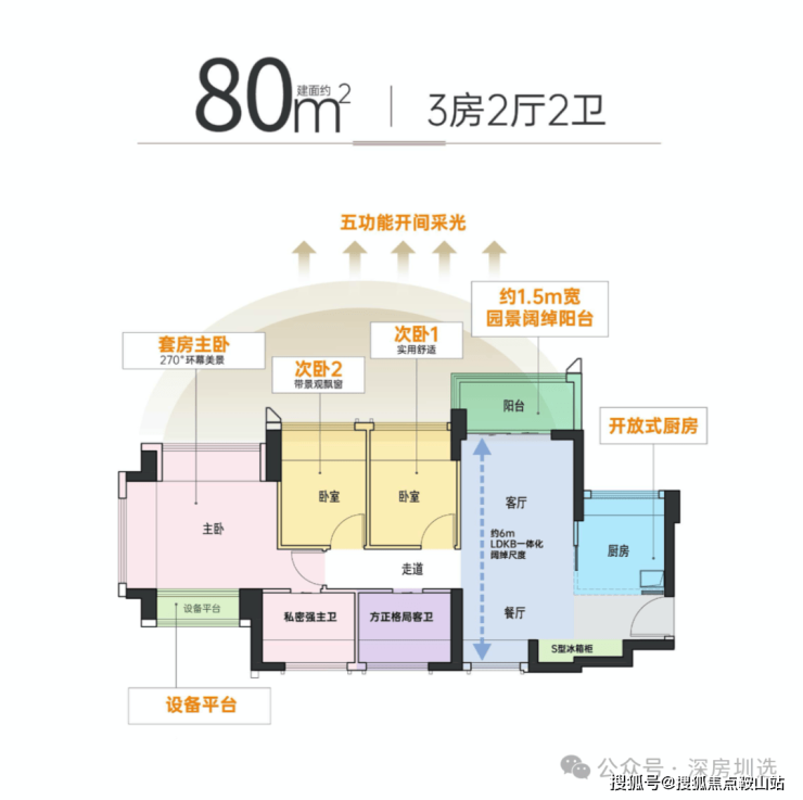 大主卧270度环幕采光,3面环景通透舒适