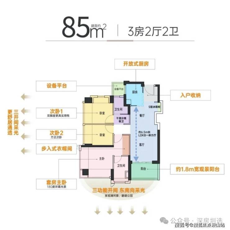 【户型面积】约75-85㎡3房2卫,约94-105㎡4房2卫
