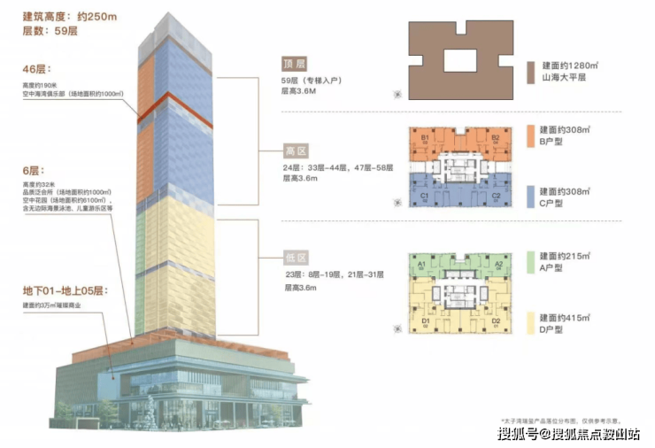 楼层高:59层(低区8-31层,高区33-58层避难层20/32层)