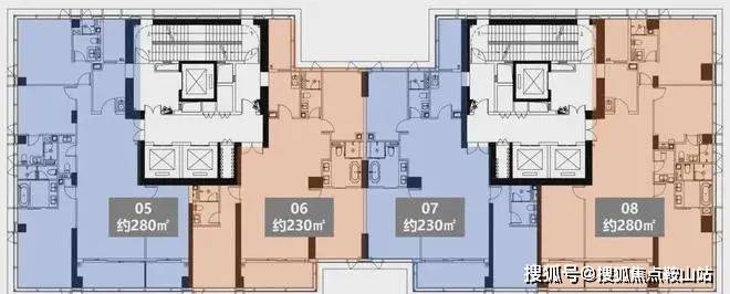 户型多样,包括230-280㎡3房3卫、300-380㎡4+1房5卫、576㎡4+1房6卫、600-700㎡6-7房7卫等