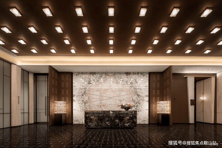 酒店式环岛落客区,尊崇归家每一步;南大堂约12米震撼层高,北大堂约6米挑高,单元大堂4.6米挑高,奢阔空间及奢石材质给足归家仪式感。