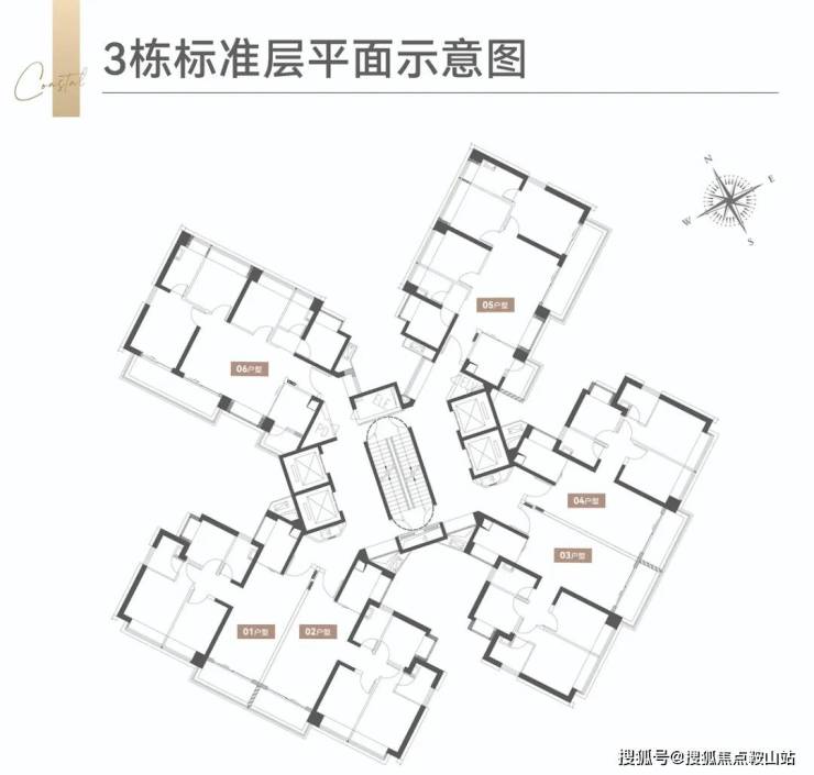 3栋:4梯6户,层高3.1米,01-04户型100平3房2卫,05-06户型120平4房2卫