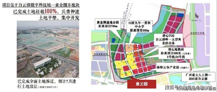 黄金围为白云湖数字科技城最大板块,进驻企业约50家,约占总数的68%。哈工大海特云谷产业园预计2023年建成;北京中关村双碳数字能源产业园预计2025年竣工;东区54班九年制学校预计2024年建成