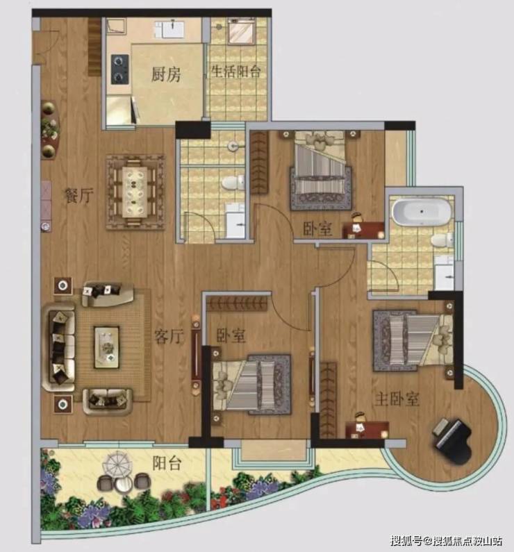 🅣🅞🅟02户型【95㎡3房2卫】东南向望江