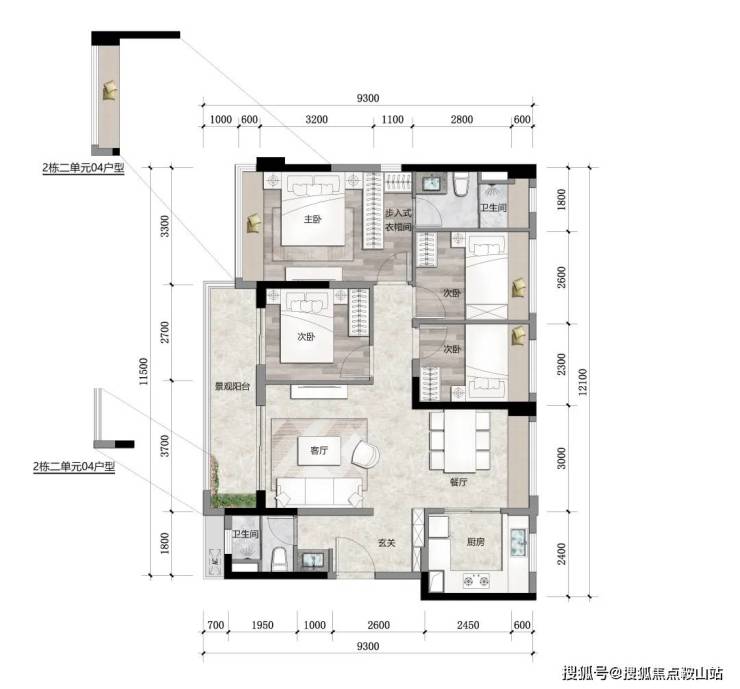 建面约 109 ㎡A户型 4房2厅2卫