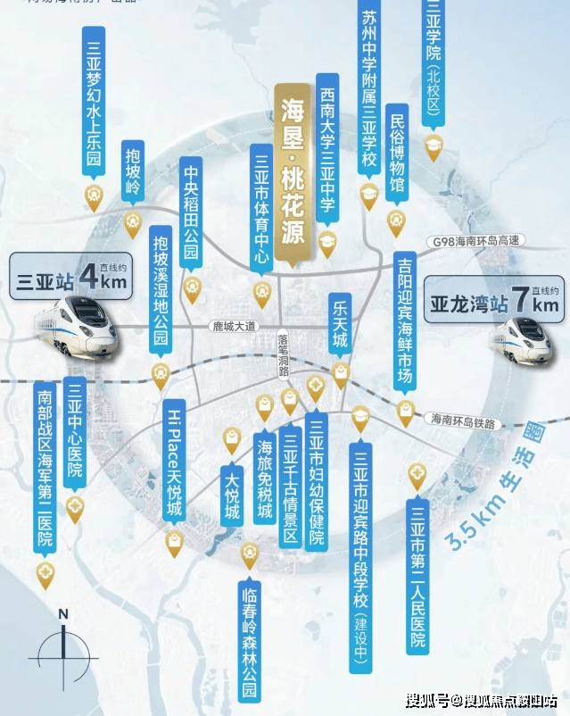 往南5分钟直达自贸港中央商务区(现已成为外资企业扎堆入驻的核心区域),发展潜力全面释放;往北2分钟上环岛高速,往西25分钟直达凤凰机场,立体交通路网畅通全城乃至全球。
