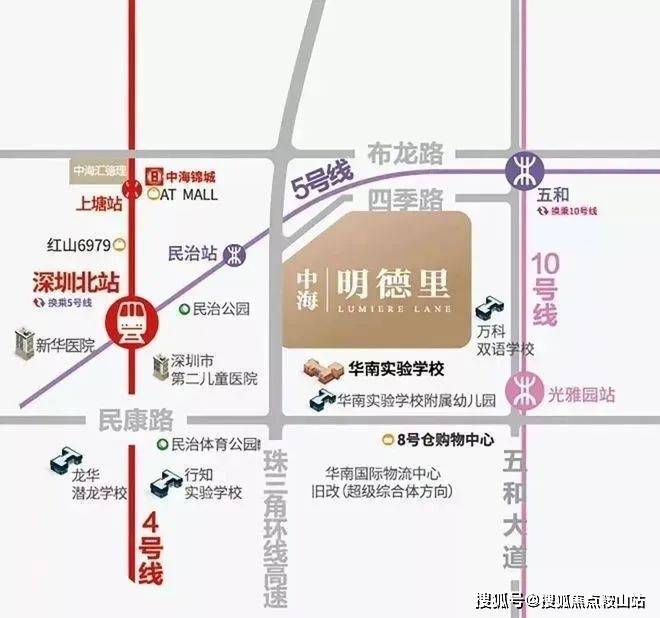 2)北站国际商务区,深圳六大总部基地之一,高投入打造国际化城市会客厅;项目距离深圳北站直线约2公里,所在民治街道是龙华目前发展的核心区域;明德里,于双区之中,在重点产业走廊之上,区域优势得天独