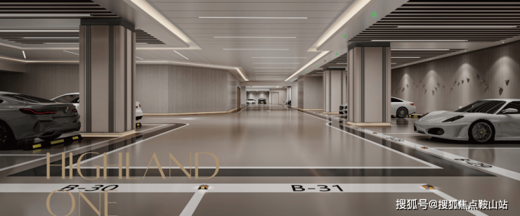 净高约3.8-5.9米的停车空间,精装交付,环保材料打造星级停车场。