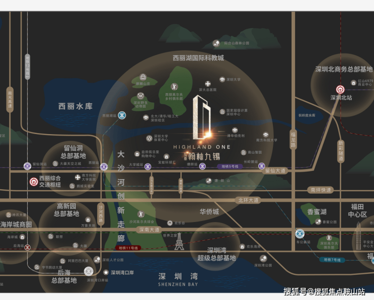 多维立体交通 国际化枢纽路网留仙大道正席,紧邻地铁5号线塘朗站,4/5/7线3轨环绕,毗邻“三纵五横”主干道,瞬息通达全城。西丽高铁站(建设中)、深圳北站两大枢纽环绕,拥有世界交通能级。