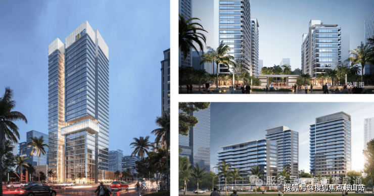 全维景观空间 一步一风景写字楼:通过简约线条与现代植栽的完美搭配,营造出专业、高效的商务氛围;住宅区:以住宅主入口、仪式水景和碧波泳池为亮点,运用灵动水景和热带植物打造浪漫的海滨意境。