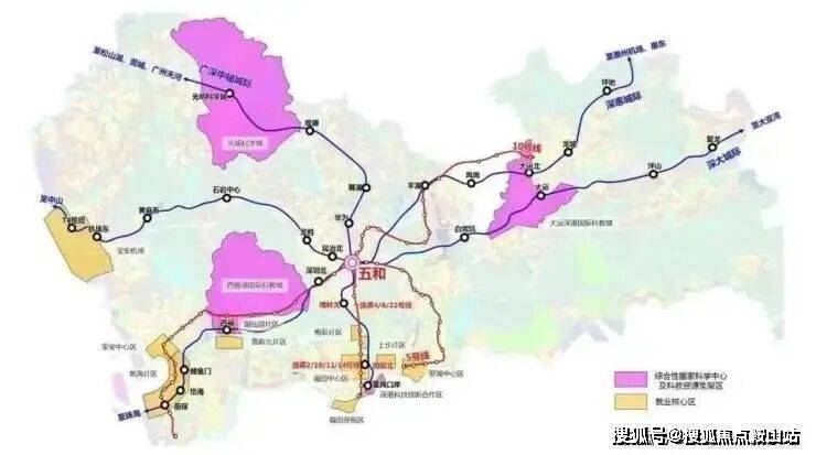 1 站到五和枢纽站,换乘 5 号线 / 深大城际;3 站到贝尔路站转 25 号线;4 站直达华为站。