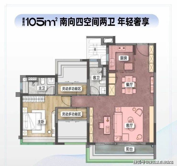中海江泰里主推的建面约75-105m²三至四空间,面积虽不大,但中海却通过巧妙的设计,玩出了“大尺度”的空间感,四开间朝南、LDKB客餐厨阳台一体化、超强的精致收纳、96%的使用率.....