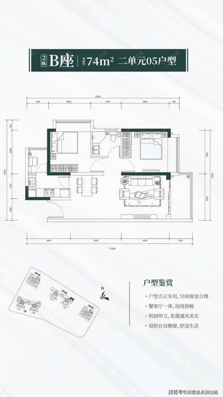 户型简介双阳台,全阳光户型