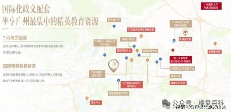 教育——项目3公里范围内集聚市二中、爱莎国际学校、贝赛思国际学校、华南师范大学附属黄埔实验学校(南校区)、美国人学校等多所国际院校,营造双语教学环境,培育与国际接轨的菁英人才;