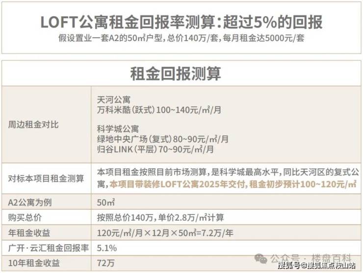 地标资产增值幅度远高于普通不动产;可用作固定资产抵押,作为良好现金流,用公司名义购买可抵减税负;项目带装修LOFT公寓租金初步预计100-120元/㎡/月。