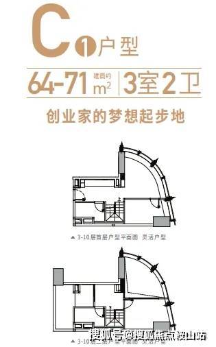 产品类型:48-115㎡复式(1-5房)C塔的loft产品6梯24户;107-350m²平层