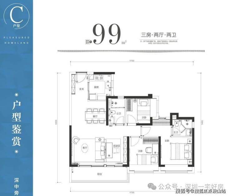 经典竖厅:独立入户玄关,客厅3.5 m开间,三开间朝南,方正通透,动静分离