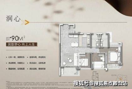 90㎡三房+1空间四开间南向:集成工作、学习、休闲功能,提供多功能家庭聚场,预留定制飘窗收纳空间及独立卫浴。