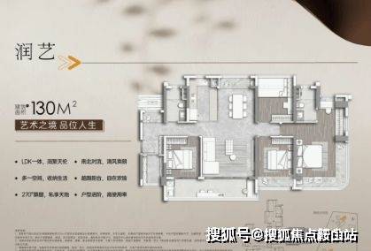 130㎡南北对流五房两厅两卫:超62㎡LDKB大方厅,打造多功能家庭共享空间,主卧L型转角飘窗兼顾功能性和舒适度。