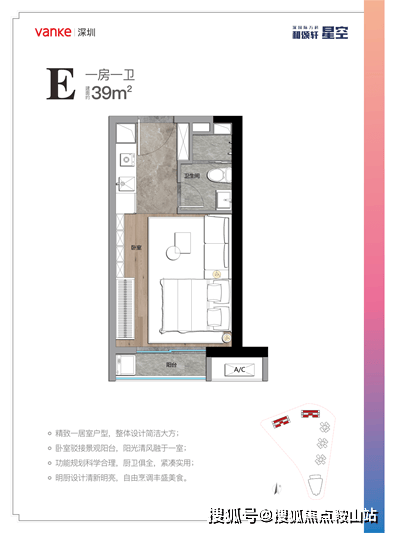 户型面积:单房39㎡、一房一厅40㎡、两房两厅56㎡
