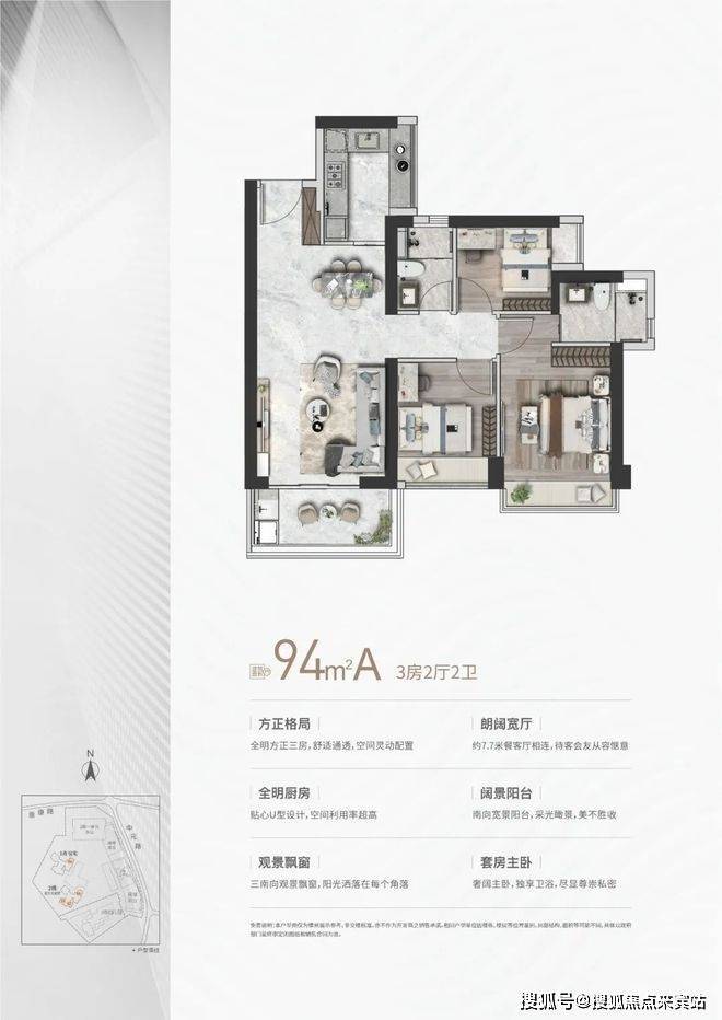 约84-118㎡全南向奢雅臻品3-4房,以奢阔尺度纳藏美满人生。