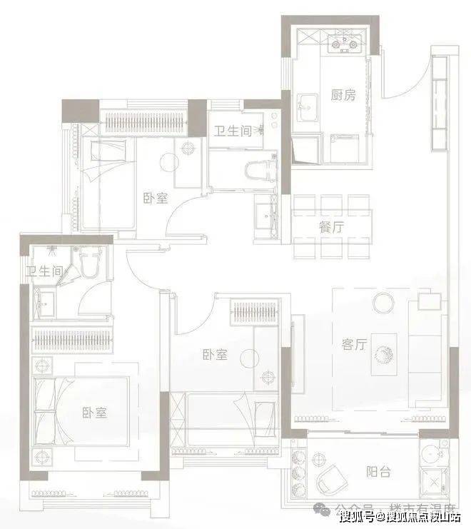 主力户型:约79㎡三房两厅一卫