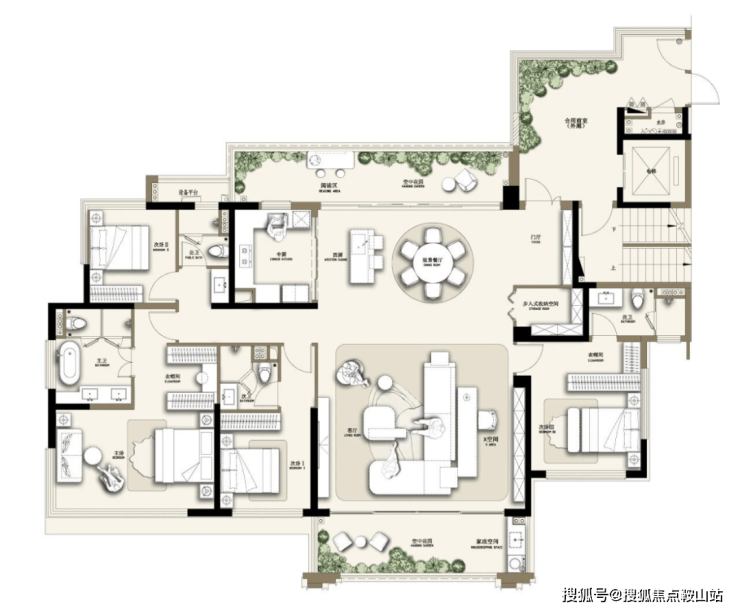 约139㎡四房两厅三卫:双套间设计,宽景阳台,户户观景,私密性与舒适度拉满